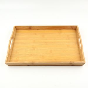 Feel the convenience of our bamboo Japanese-style rectangular tray, featuring dual handles for easy carrying.